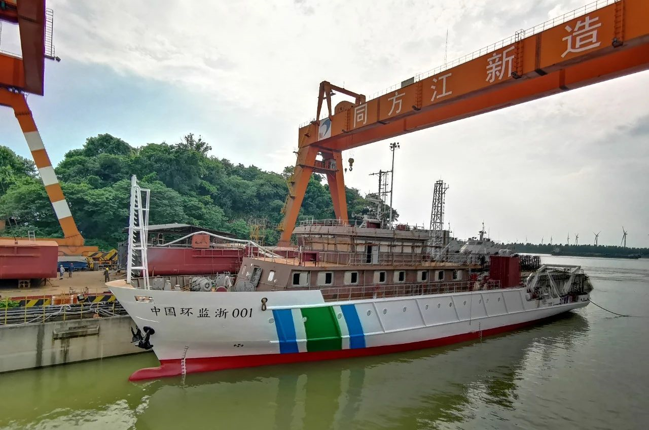 6月10日,由同方江新造船有限公司为浙江省海洋生态环境监测中心建造的、我国首艘千吨级近海生态环境监测船——“中国环监浙001船”建成下水。