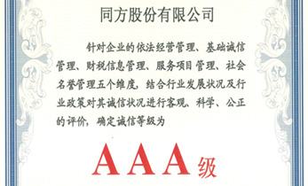 同方获北京安防行业协会颁发的“AAA级诚信等级证书...